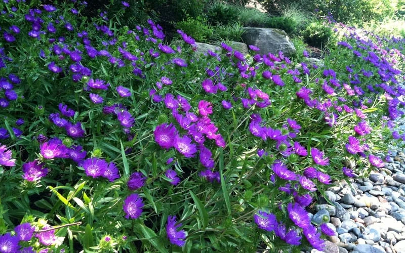 A super easy to grow, tough as nails but beautiful and long lived North American native perennial, Honeysong Purple Stokes Aster aims to please both you and the butterflies and beneficial pollinators all summer long and into fall with her large, true royal purple aster-like flowers. The flowers are also excellent for cutting and use in floral arrangements. A vigorous grower forming a dense mound in full to mostly sunny sites. A great garden performer that will bring you many years of enjoyment with almost no maintenance required.